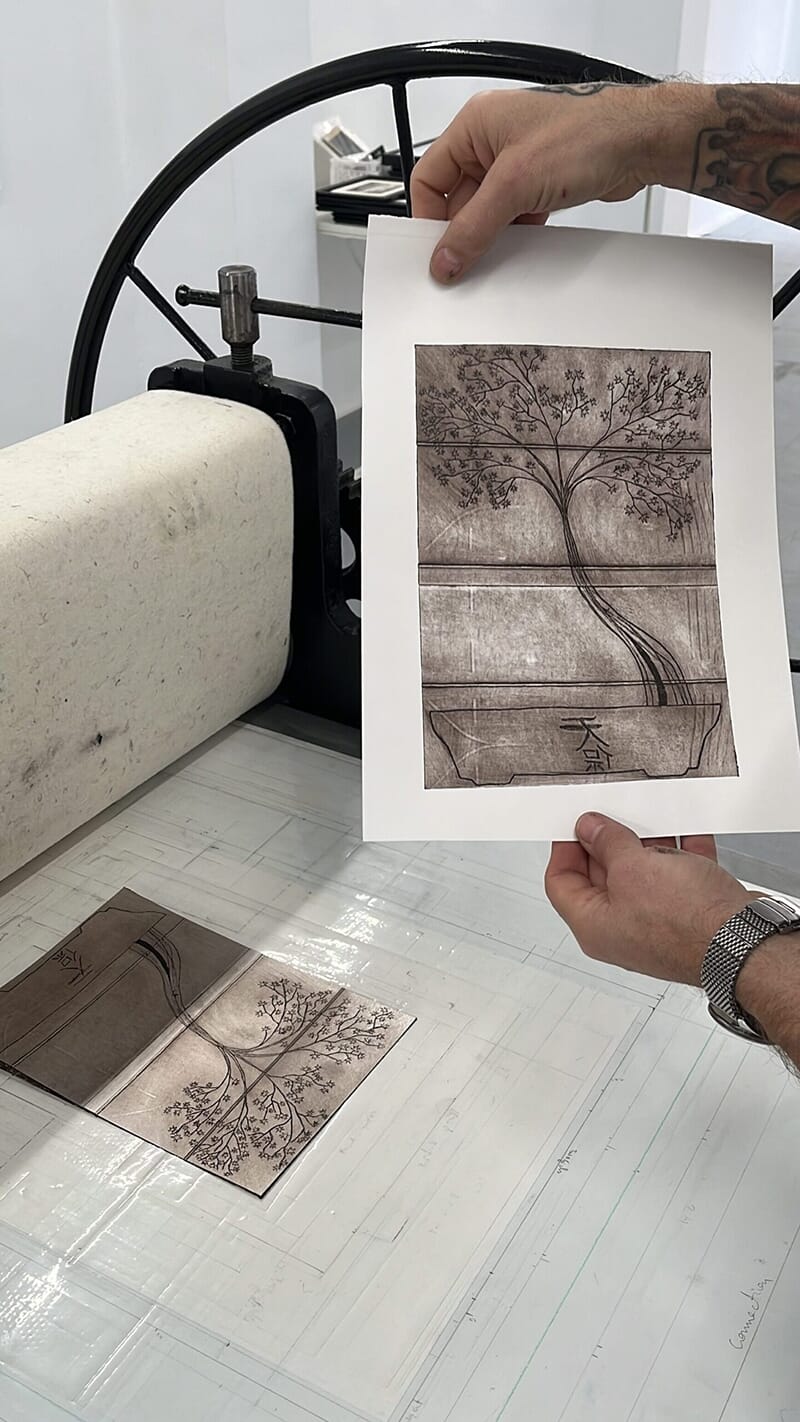 With over 15 years of experience in printmaking, Sergejs has participated in international exhibitions, artist residencies, and competitions. His approach combines classical printmaking techniques with contemporary artistic practices.